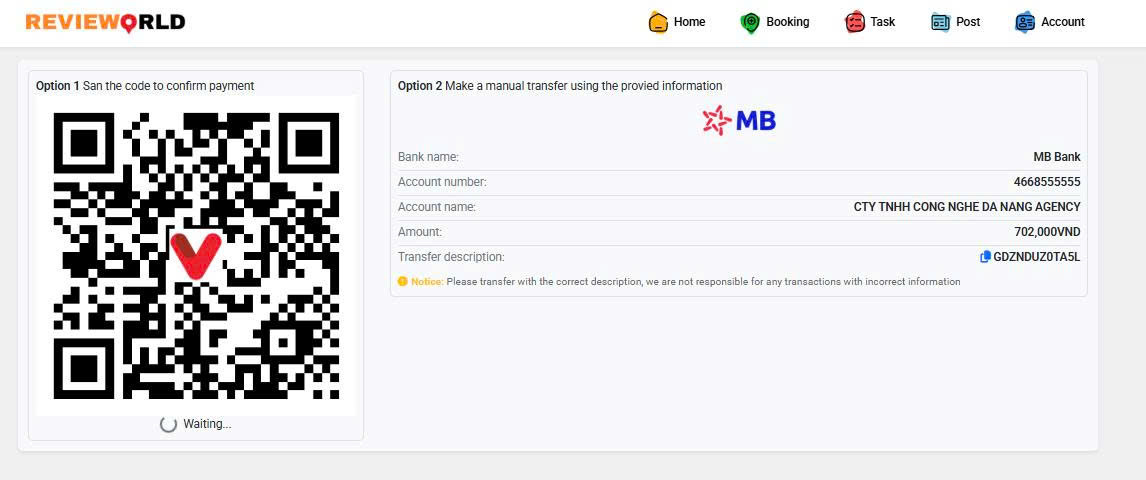 Note: You must deposit money into your wallet before making a Booking. Please review the DEPOSIT INSTRUCTIONS on this page for more details!